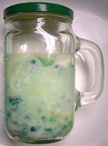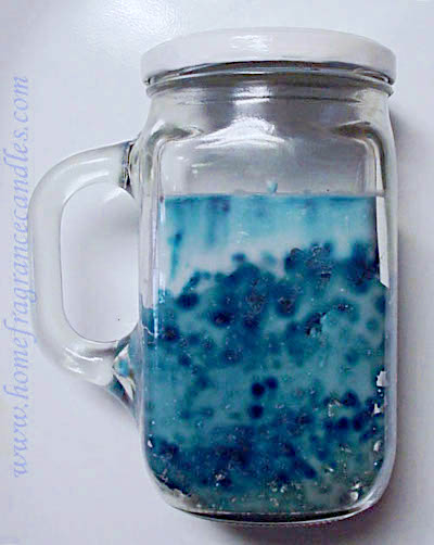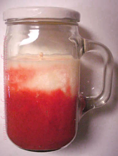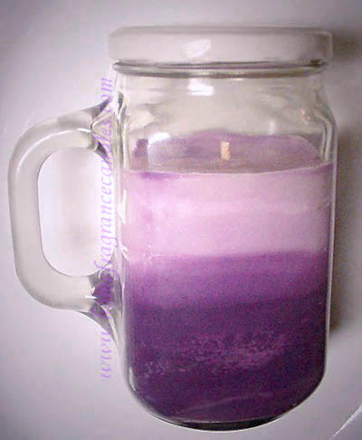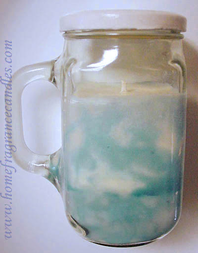 Candles with specks or splashes of color, ombré, or solid coloring in a mug style jar